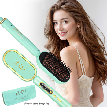 ENZO Bàn Chải Duỗi Tóc Tiện Lợi Mới Lược Mát Xa Làm Nóng PTC Bàn Chải Tóc Ion Di Động Bàn Chải Tóc Điện Kim Loại Bán Chạy